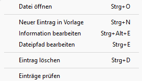 Machen Sie einen Rechtsklick auf den Eintrag, der bearbeitet werden soll. Es stehen folgende Optionen zur Verfügung:
