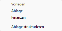 Hierüber lassen sich die Dateipfade zu Vorlagen, Ablage oder Finanzen - Ordner von Faktura-X öffnen. Außerdem kann die Struktur der Ablage festgelegt werden.