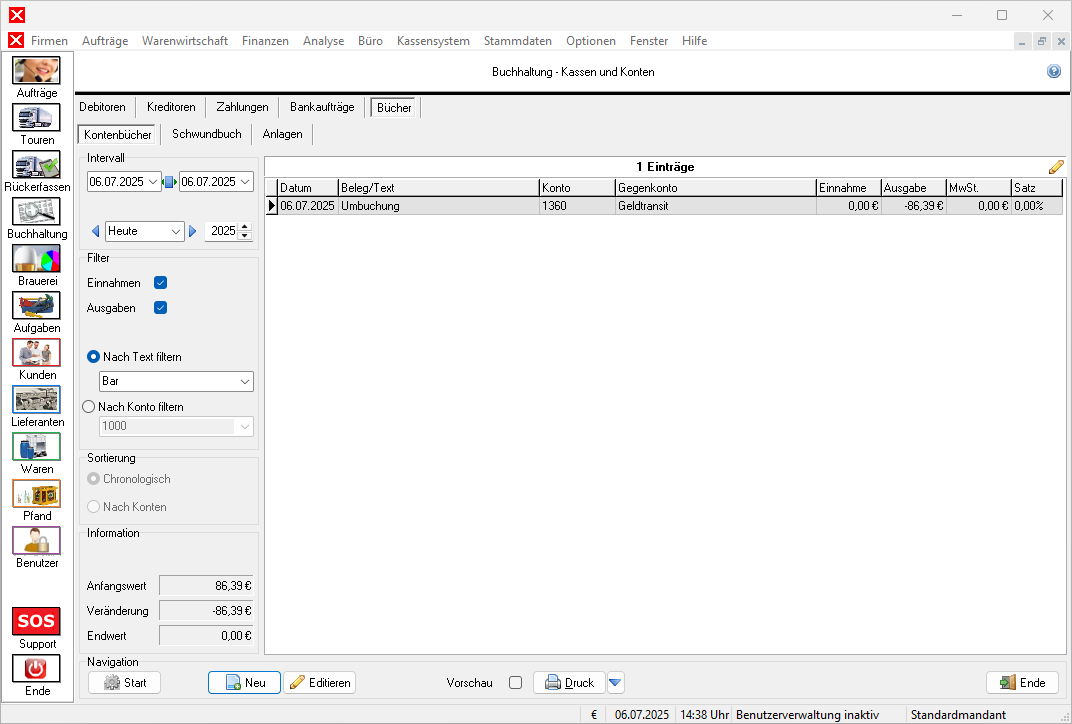 (Finanzen → Buchhaltung → Sie sind auf der Seite: Bücher)