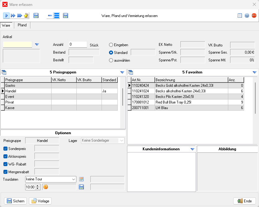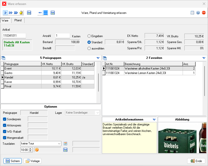 Sie können mit der Anwendung auch Pfandartikel oder Vermietartikel erfassen.