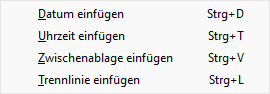 Um Informationstexte zu bearbeiten, die in der Artikelerfassung angelegt wurden, klicken Sie mit der rechten Maustaste auf einen Text und wählen Text bearbeiten. Alternativ wählen Sie den Artikel an und drücken Einfg.