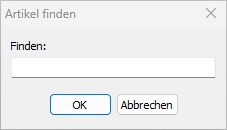 Um einen Posten in der Warentabelle zu finden, wählen Sie einen beliebigen Posten mit der rechten Maustaste an und im Optionsmenü die Option Artikel in Posten finden. Es öffnet sich folgender Dialog: