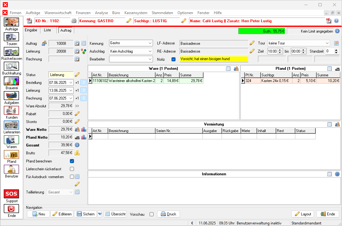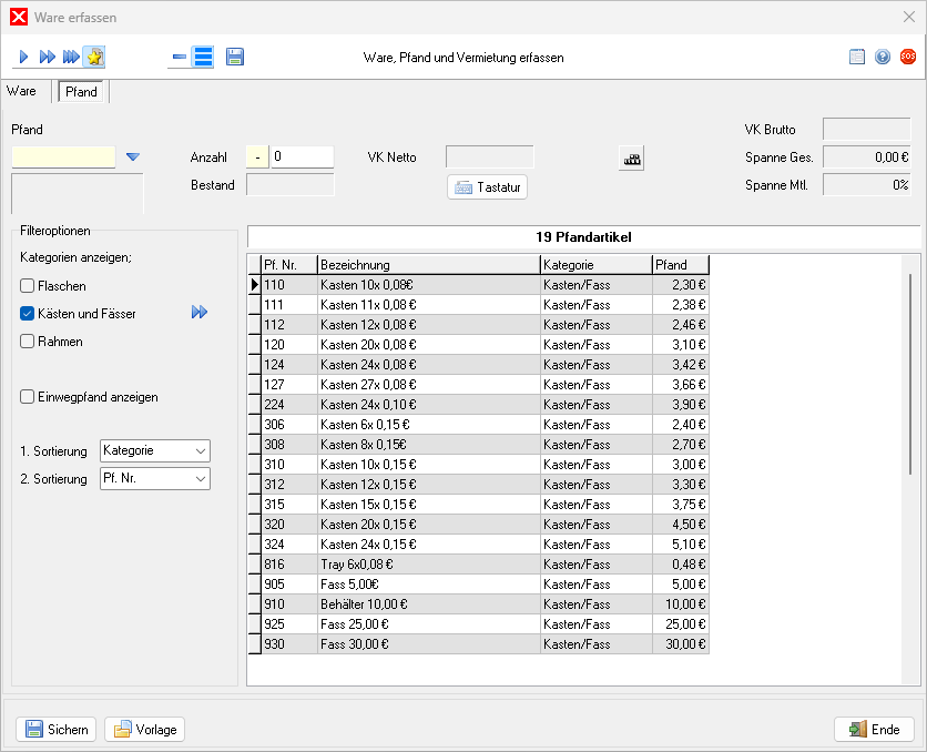 • Öffnen Sie anschließend die Pfanderfassung via in die Pfandtabelle oder STRG + L.