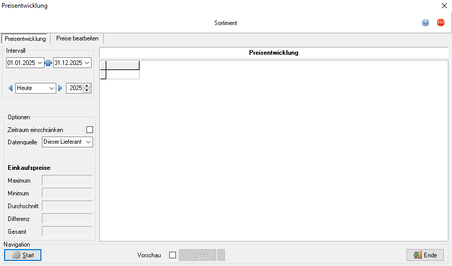 Der Dialog wird mit der Schaltfläche "Neue Matrix", oder "Matrix editieren" in der Lieferantenverwaltung im Register Sortimente gestartet.
