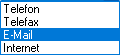 Das Auswahlfeld Kategorie definiert die Art des Eintrages (Telefon, Telefax, E-Mail, Internet). Je nach Eintrag löst ein Klick auf die Schaltfläche hinter dem Eingabefeld eine dieser Aktionen aus.