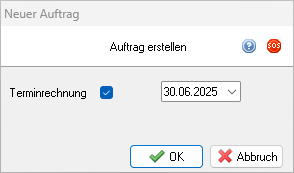 Eine Terminrechnung wird durch Aktivieren der Option Terminrechnung im Dialog Neuer Auftrag angelegt.