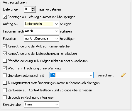 In der Gruppe Auftragsoptionen ist eingestellt: Lieferungen 3 Tage vordatieren.