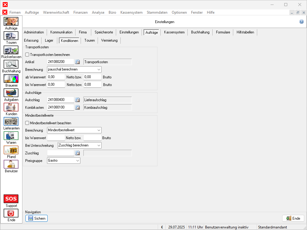 Register AdministrationRegister KommunikationRegister FirmaRegister SpeicherorteRegister EinstellungenRegister KassensystemRegister BuchhaltungRegister FormulareRegister HilfstabellenRegister Aufträge#ErfassungRegister Aufträge#LagerRegister Aufträge#KonditionenRegister Aufträge#Touren