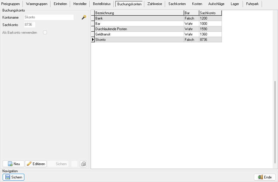 Kontenplan Bar Bank Geldtransit Durchlaufende Posten Skonti SKR 03 1000 1200 1360 1590 8730 SKR 04 1600 1800 1460 1370 4730