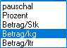- Geben Sie die Basiskalkulation für die Gruppe ein. Die Kalkulation kann prozentual, absolut, je kg Masse oder Liter Volumen erfolgen.