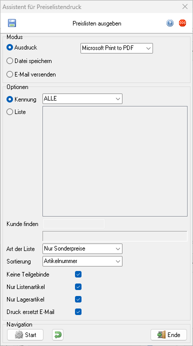 Assistent für Preislistendruck