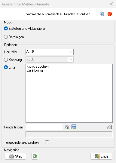 Mit diesem Assistenten können Sortimente eines Herstellers automatisch auf mehrere Kunden angewendet werden. Dabei können auch fehlende Artikel zugefügt oder Sortimente entfernt werden.